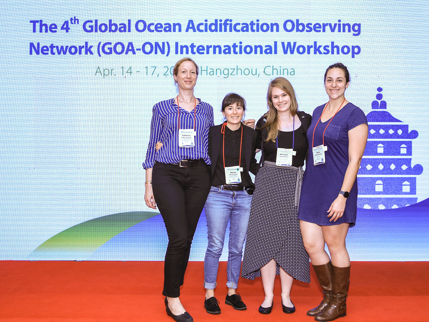 The GOA-ON Secretariat at the 4th GOA-ON International Workshop in Hangzhou, China, April 2019. From left to right: Katherina Schoo (IOC-UNESCO), Marine Lebrec (IAEA OA-ICC), Meredith Kurz (former GOA-ON Secretariat member at NOAA), Alicia Cheripka (NOAA).