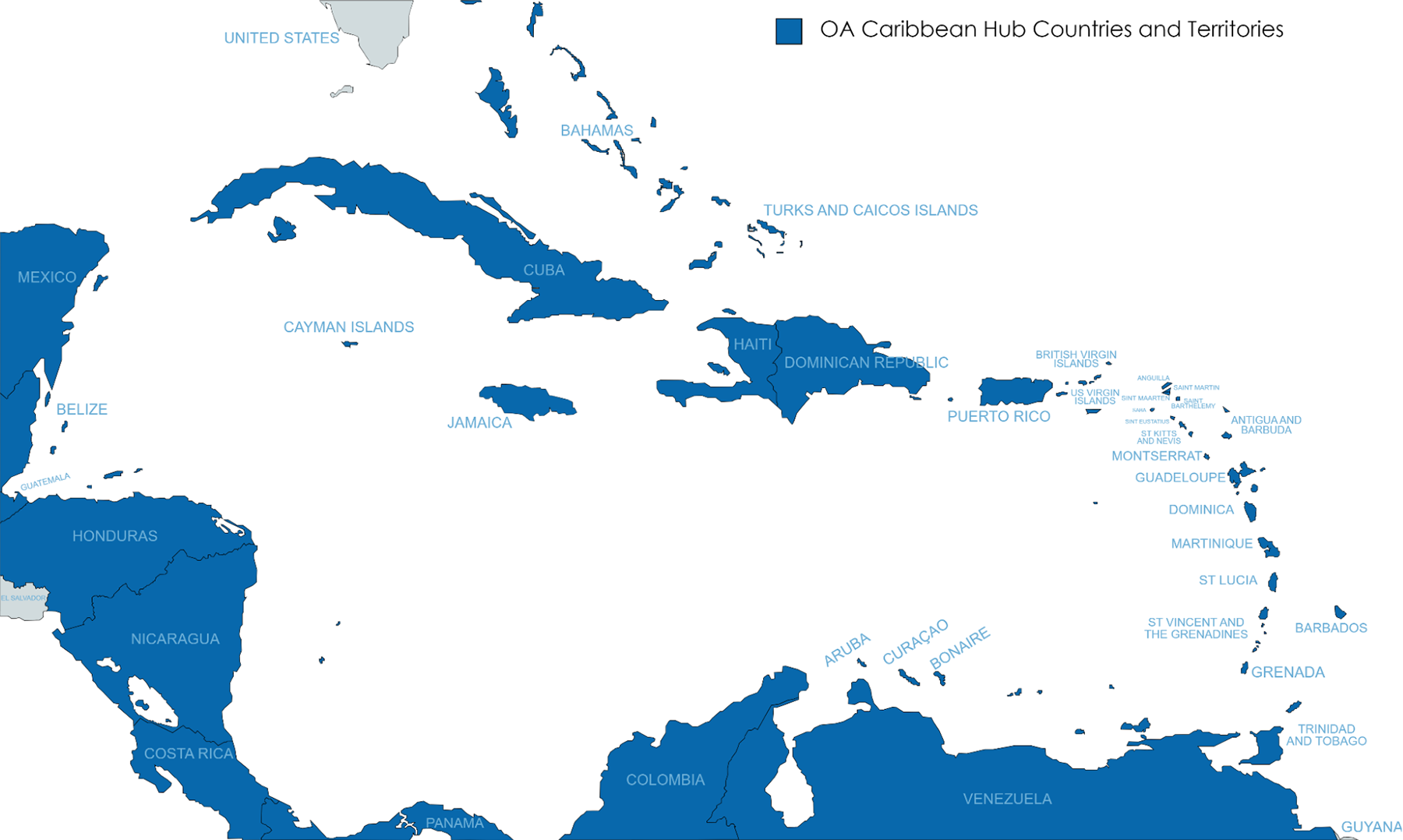 The OA Caribbean Hub welcomes members from the wider Caribbean region, including US Territories, yet excluding mainland US.