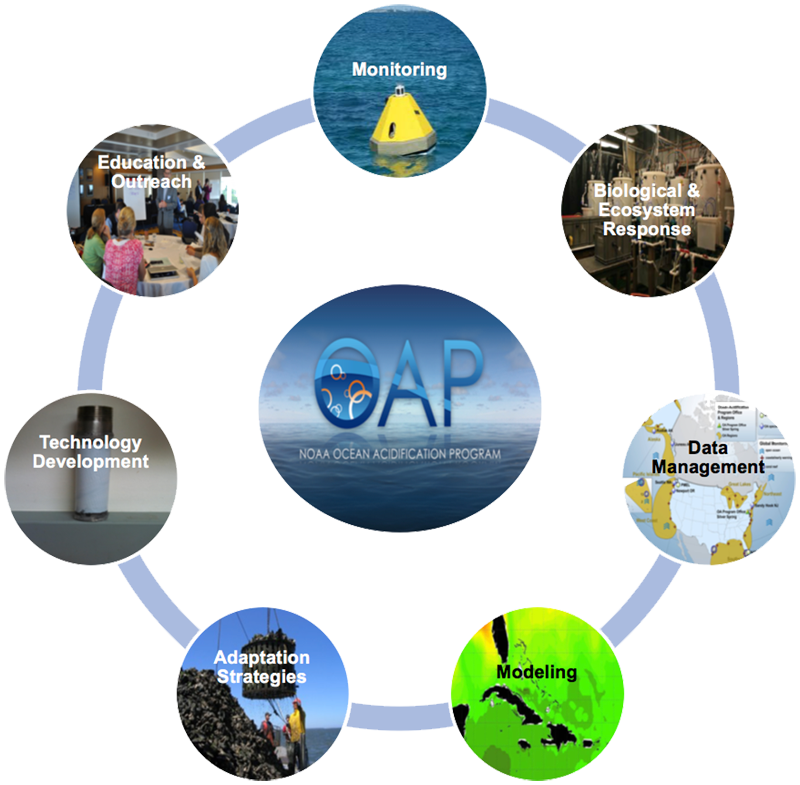 NOAA's Ocean Acidification Program seeks to better prepare society to respond to changing ocean conditions and resources by expanding understanding of ocean acidification, through interdisciplinary partnerships, nationally and internationally. Ocean acidification is occurring because our ocean is absorbing carbon dioxide from the atmosphere, leading to lower pH and greater acidity. This is causing a fundamental change in the chemistry of the ocean from pole to pole.